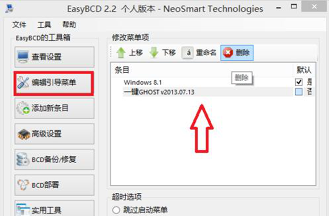 这里分享的是EasyBCD删除一键ghost选项,具体操作如下: