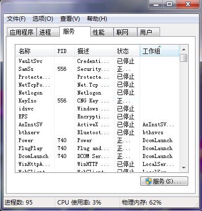 1、打开Win7任务管理器,可看到正在运行的那些程序。