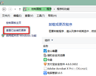 2、在卸载程序中单击左上角的“查看已安装的更新”。