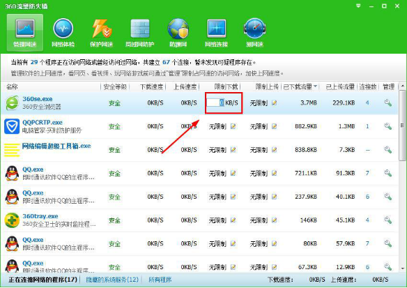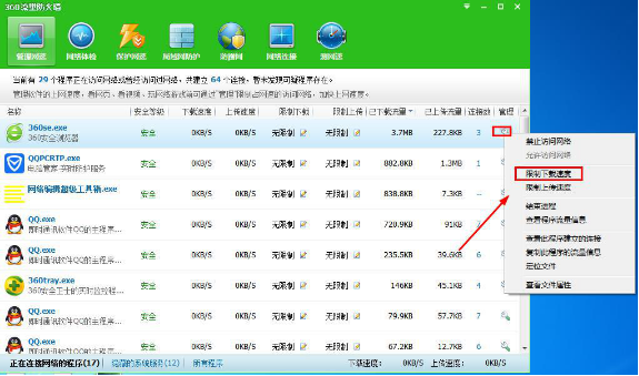 妙用360限制Win7 32位系统笔记本中软件的下载/上传速度