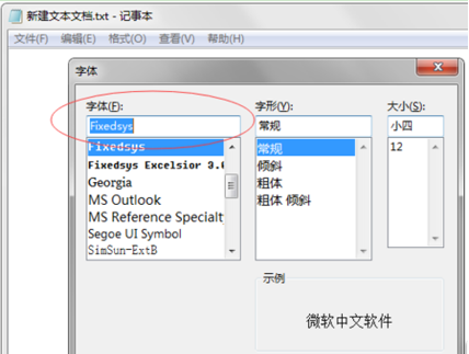 5、当然如果你是比较怀旧的用户,可选择:Fixedsys 字体,此字体是winXP和win2003中记事本的默认字体。