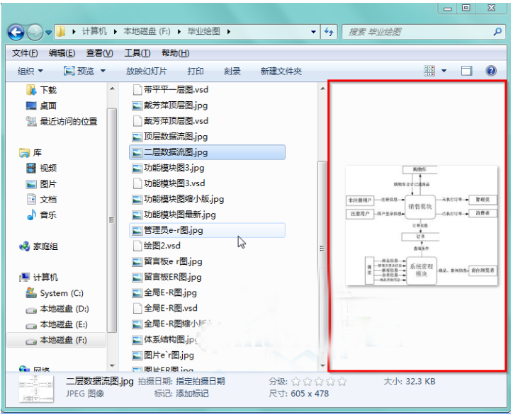 3、预览窗格点选完毕后,随便选择一张图片,就可在开启的win7预览窗格中看到该图片的效果了。