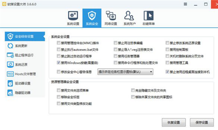 2、切换到“系统安全”标签页,点击“安全综合设置”。