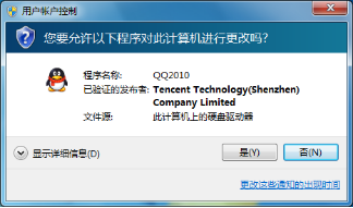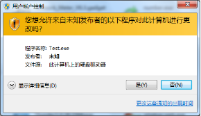 2、如果用户运行了不属于windows的一部分程序时,但也会需要用户的许可,它才能启动,出现的提示如下图示。