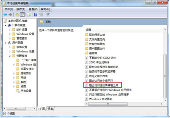 3.中打开的系统设置中找到“阻止访问注册表编辑工具”,双击打开。