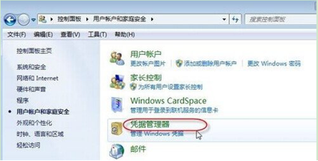 3、此时系统弹出“用户账户和家庭安全”窗口,点击“凭证管理器”链接