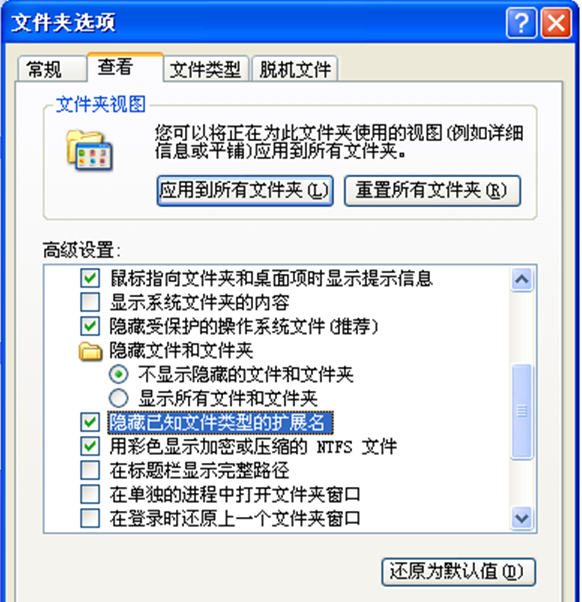 通过以上对这个注册键的修改后,即使用户是否在“资源管理器”选中了“隐藏已知文件类型的扩展名”选项, EXE文件的扩展名都会自动显示出来。