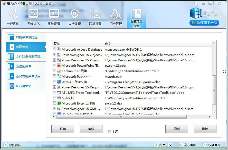 2、打开魔方,在魔方优化设置大师界面中选择右上角的“右键菜单定制”