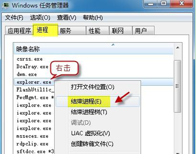 Windows7系统重启explorer进程解决计算机卡屏的方法