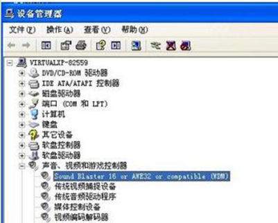 6、在打开的“声音、视频和游戏控制器”选项,查看声卡驱动有无黄色“?”或黄色“!”(?说明声卡驱动没有安装或安装不正确,!说明声卡驱动不匹配);