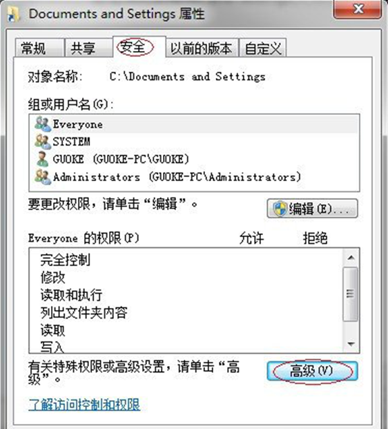 Win7 32位系统中documents and settings文件禁止访问的解决方案