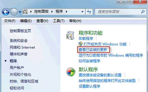 1、点击“开始——控制面板——程序—— 程序和功能——查看已安装的更新”。