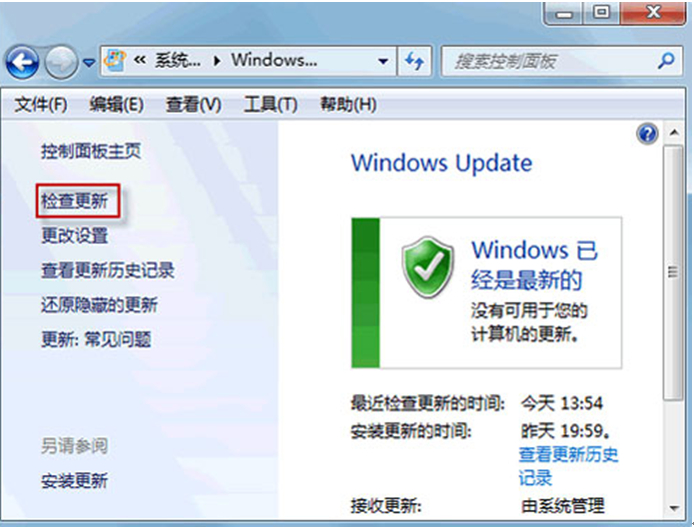 4、如果卸载发现了什么不妥的话,不用担心,直接下载重新安装这个更新即可。方法是:打开“控制面板\系统和安全\Windows Update”,在窗口左侧,单击“检查更新”即可。